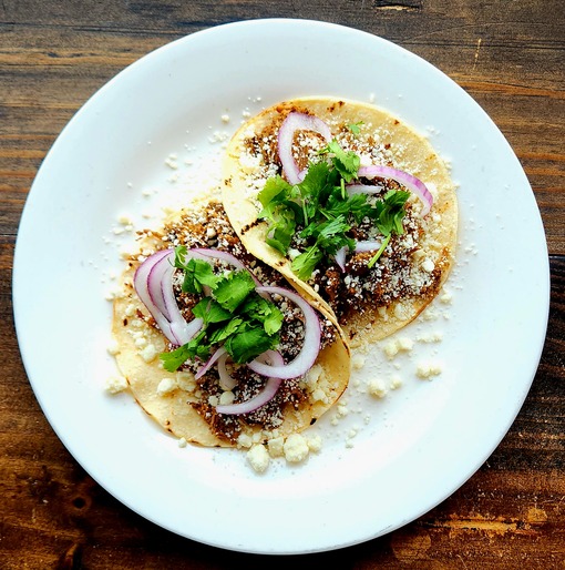 Street Taco - Shredded Beef Barbacoa, Corn Tortillas, Queso Fresco Cheese, Onion + Fresh Cilantro Garnish