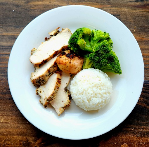 Herb-Grilled Chicken Breast, Broccoli Florets & White Rice